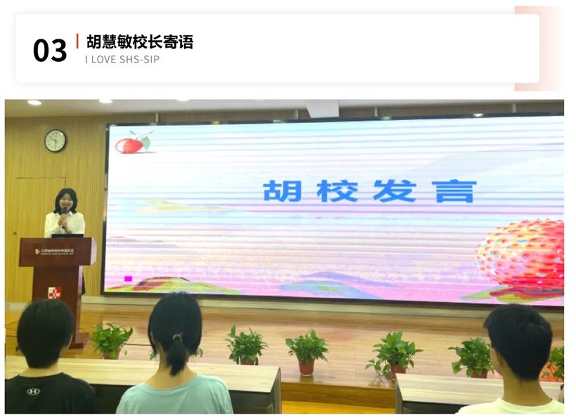 胡慧敏校长在高三同学起航之际,送来了寄语:身处这段基础教育之旅的最终段,同学们将走向更广阔的人生,不妨以“领受礼物”的心态来面对接下来的高三生活。就像加缪笔下的西西弗斯推巨石,即便是在被定义为荒诞的徒劳中,西西弗斯也可以是幸福的,同学们同样可以感受在高三苦行中蕴藏的充实之快乐,那将命运把握在自己手中的幸福。