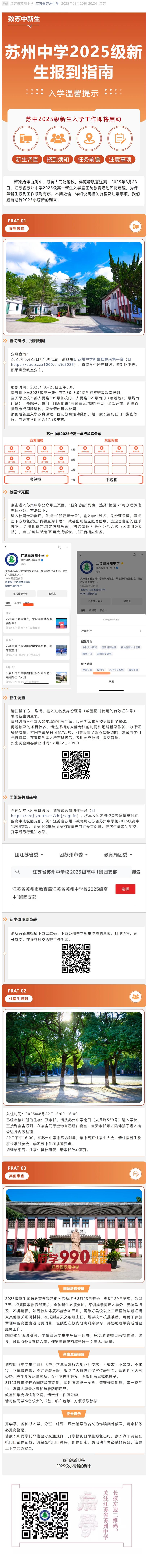 必看‼️苏州中学2025级新生报到指南→