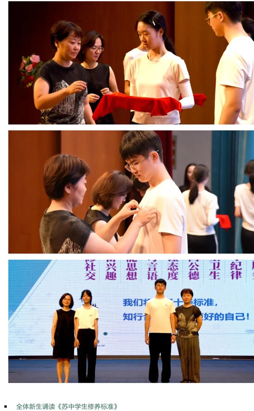 苏州中学园区校学子与苏州中学本部学子一样,入学即佩戴“江苏省苏州中学”校徽,这是西马学子特别的荣耀。今天的新生入学典礼上,苏州中学园区校副校长邓娟、苏州中学园区校副校长吴冯为新生代表佩戴校徽,同时,全体同学起立,一起佩戴苏中校徽,自此,成为值得永远骄傲的苏中人。