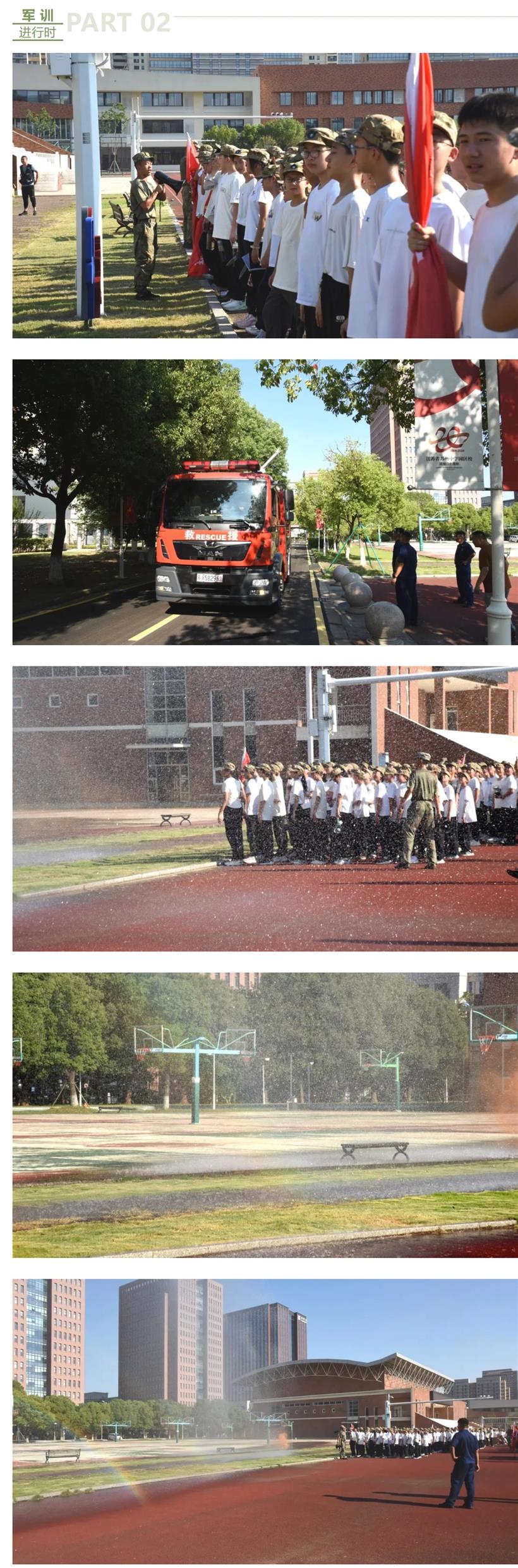 翌日清晨,军训号角在操场上正式吹响。骄阳炙烤大地,学校特意安排洒水车穿梭洒水,水雾在阳光下折射出细碎的彩虹,给紧张训练的同学们送来片刻清凉。