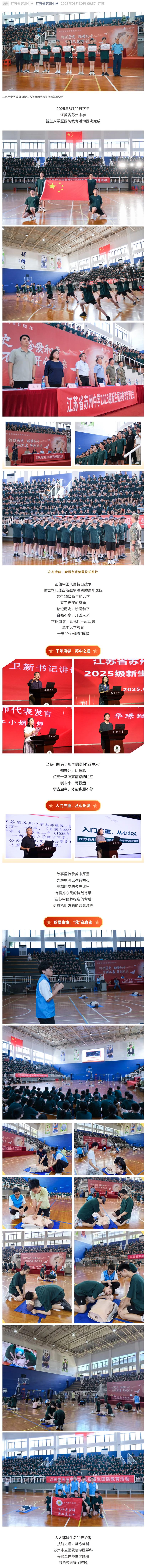 十全课程,十分收获,苏州中学2025级新生入学暨国防教育活动圆满完成