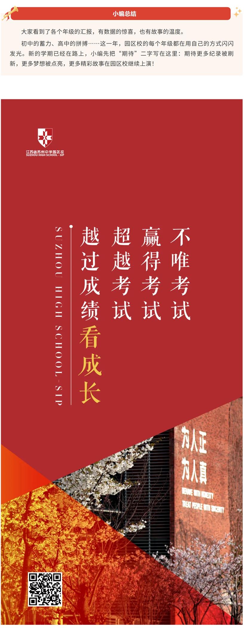 成绩,是努力的回响;精神,是成长的注脚。过去的一年,园区校的学子们从初一到高三,用各自的行动,共同书写着高质量发展的篇章。