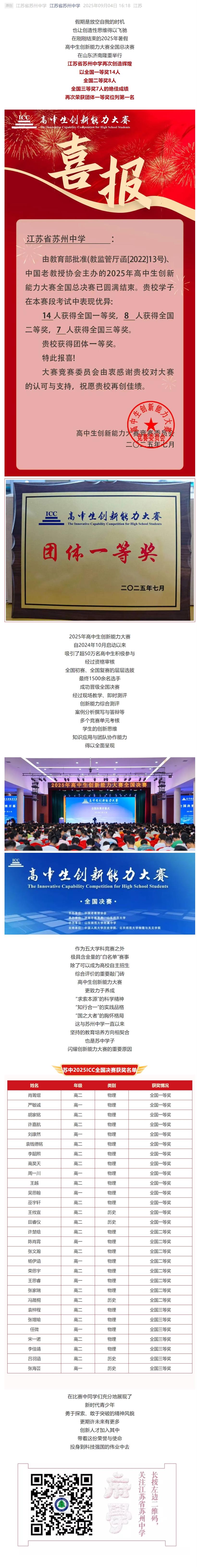 团体一等奖首位!苏中学子闪耀“高中生创新能力大赛”