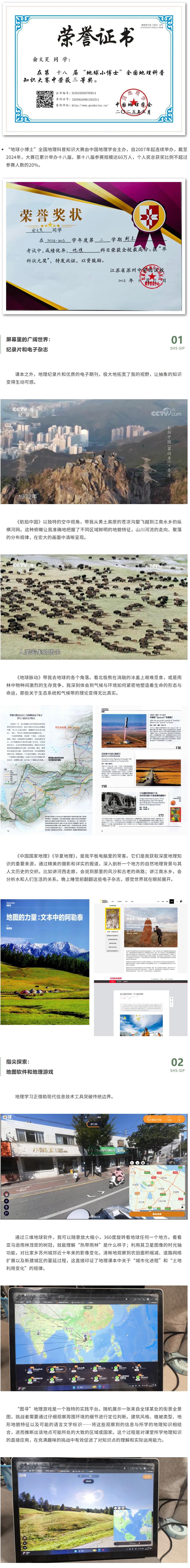 正因为这样的探索精神,他在第十八届地理小博士全国地理科普知识大赛中获得了三等奖,也为自己的学习实践添上了亮眼的一笔。