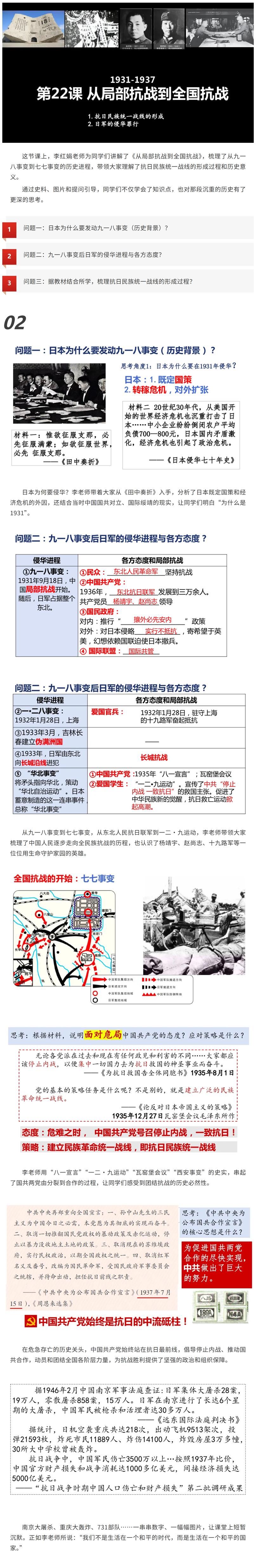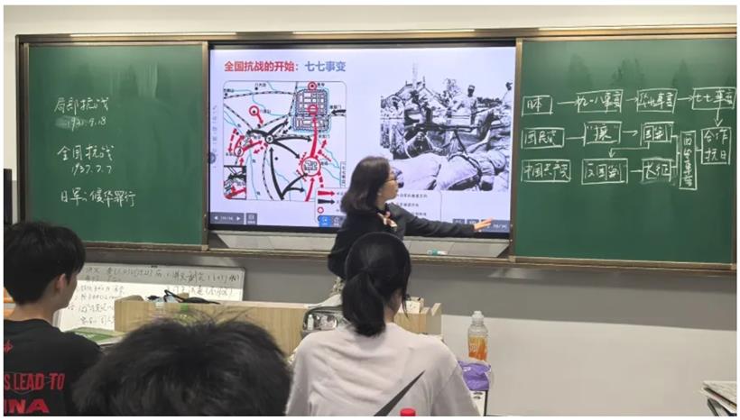 苏州中学园区校教学管理中心主任、历史教师李红娟,为同学们带来了一节特别的公开课《从局部抗战到全国抗战》。课堂上,她带领同学们重回烽火年代,从九一八事变到全面抗战,梳理了中国人民浴血奋战、共赴国难的历史脉络。