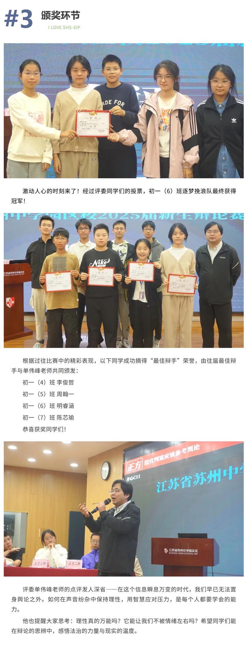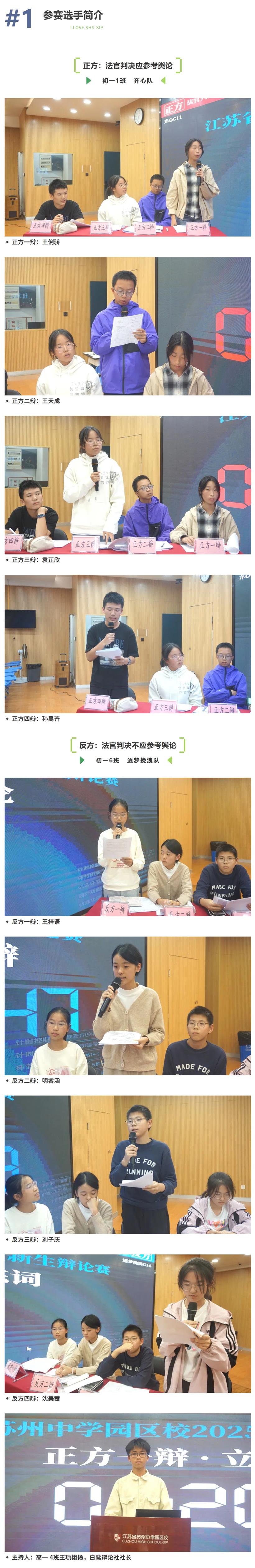 经过激烈的比拼,初一(1)班和初一(6)班成功晋级决赛,辩题是——“法官判案是否应该参考舆论?” 这场没有标准答案的辩论,让语言与思考同频闪光,理性与热情交织成了一场精彩的思想对决。