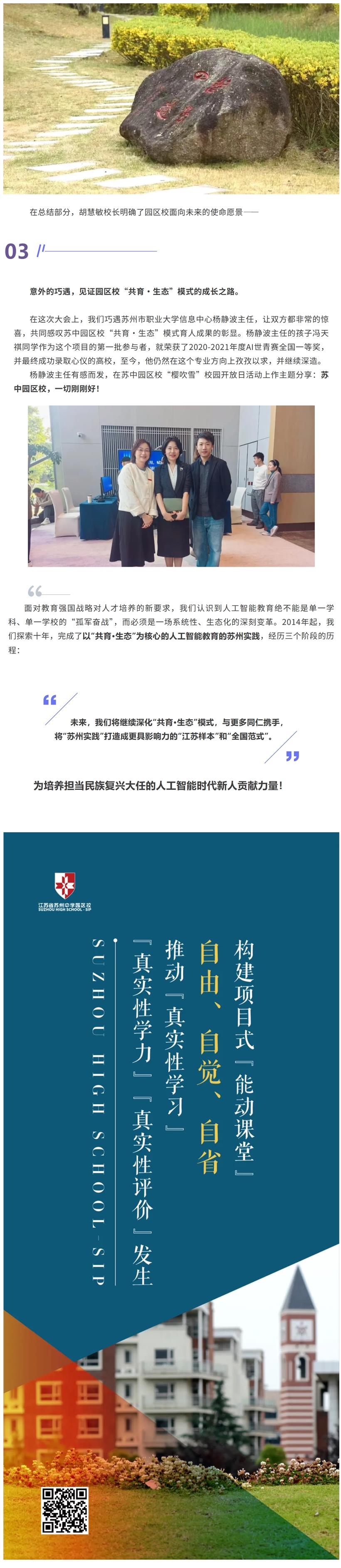我们期待“共育·生态”的示范田继续生长、继续开花,让江苏“AI+教育”有更多来自苏州、来自园区校的声音与惊喜。