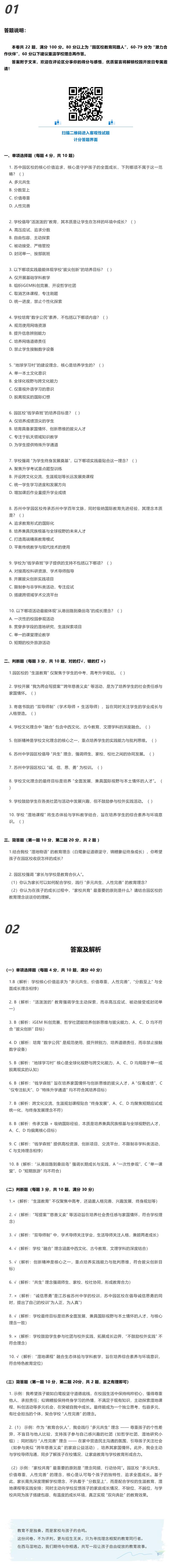 想成为苏中园区校家长?这份教育理念问卷,测测您是否同频!