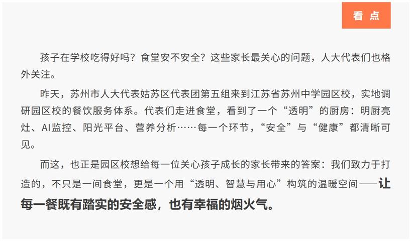 苏州市人大代表来为家长们探秘园区校食堂了!