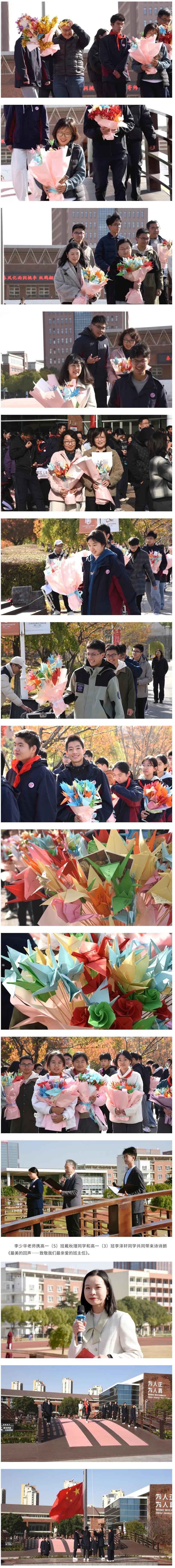 于是,一只只承载着心意的纸鹤从教室里起飞,聚成了一束永不凋零的感恩之花。这是同学们对班主任最热烈的回应,也是最真诚的表达: