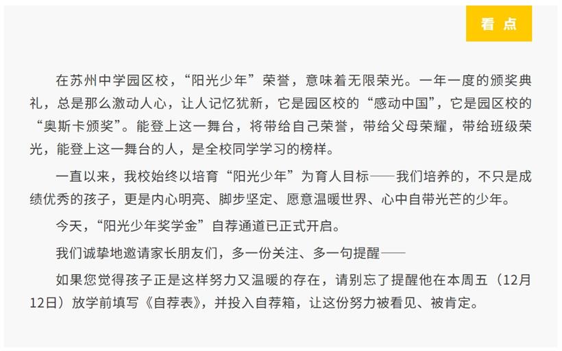 向光而行 | 苏州中学园区校“阳光少年”奖学金评选自荐通道正式开启!